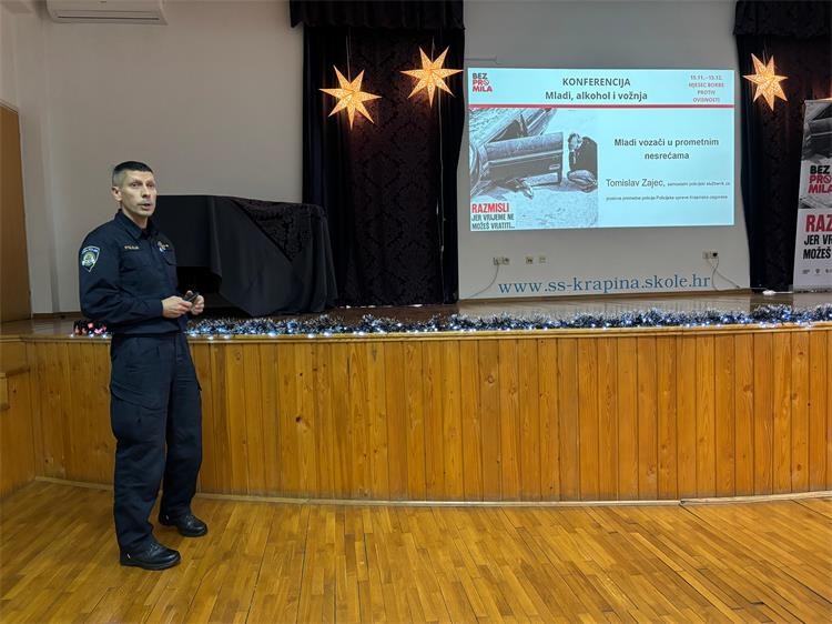 Ivana Radanović u ime Mreže udruga Zagor predstavila je ovogodišnje rezultate projekta, dok je Tomislav Zajec, samostalni policijski službenik za poslove prometne policije Policijske uprave krapinsko-zagorske, iznio podatke o broju i vrsti prometnih nesreća na području Policijske uprave krapinsko-zagorske s naglaskom na prometne nesreće u kojima su sudjelovali mladi vozači i prometne nesreće u kojima su sudjelovali mladi vozači pod utjecajem alkohola.